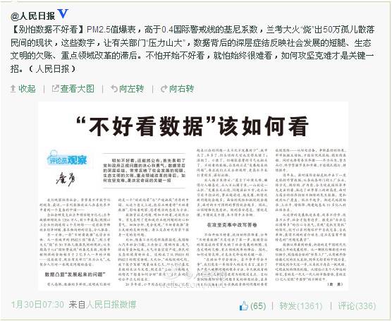 1月31日,《人民日报》新浪微博就“不好看数据”如何看发表微议。我部教师以“沪城学士”网名发表的微议再次被微议录引用。