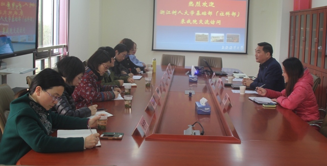 3月16日,浙江树人大学基础部(社科部)副主任、直属支部书记陈俏巧,基础部副主任刘斌等一行七人来公司访问交流。yl23455永利经理董玉来,直属党支部书记、副经理陈艳红在行政楼306会议室接待了客人一行。