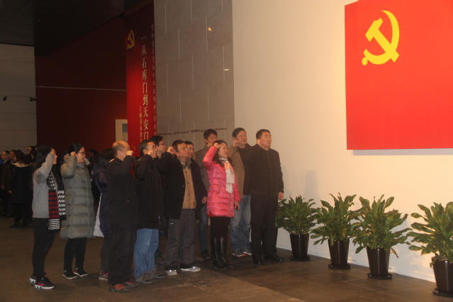 参观前,董玉来经理领誓,全体党员在党旗下重温了入党誓言。漫步展厅,大家在庄重的氛围中观赏画作、阅读文字解析,从一幅幅美术作品中了解中国共产党的历史,感受不同时代的上海风貌。大家纷纷表示,将我党一大到十九大的变化发展历程以美术作品形式展现,让我们的思想受到教育,也让我们心灵受到震撼,再一次领会了上海作为党的诞生地的特殊地位、特殊使命。我们要进一步把革命先烈们忠于人民、无私奉献的革命精神和先辈们改革创新、求真务实的工作作风贯穿到自己的教学科研工作中去,努力提高公司思想政治理论课和马克思主义理论团队建设水平。