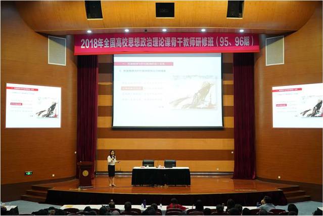 10月25日星期四,yl23455永利青年教师王茜在图文信息中心104报告厅为来自全国29个省市自治区的200名骨干教师做现场教学展示。此次教学观摩活动是 “2018年全国高校思想政治理论课骨干教师研修班(第95、96期)”的研修项目之一。