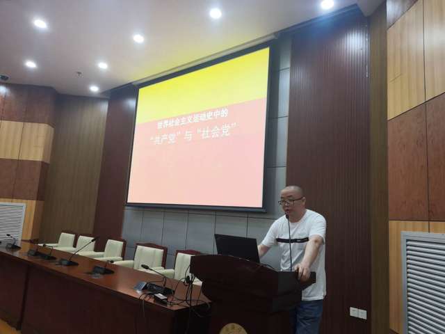 赖恩明副教授从学习强国挑战答题“第一个提出‘中国共产党’这一名称的人是谁?”引出报告主题。他详细介绍了“共产党名称的由来”“《共产党宣言》中的‘共产党’是什么党”和“为什么共产国际成立之前‘社会党’比‘共产党’更流行?”三个问题。他介绍说,现在欧洲一些国家的社会党也喜欢讲社会主义,还喜欢加上民主这一限定词,但是,无论是民主社会主义,还是社会民主主义,一般都是第二国际各社会党右派思想的延续,坚持的是改良主义和修正主义的传统,不是马克思主义的科学社会主义,我们要防止对马克思主义基本原则的修正主义式的篡改,要敢于对各种非马克思主义进行斗争。他说,最近的全面脱贫攻坚、疫情防控等,都显示了公有制的优越性,我们在建设中国特色社会主义的过程中,要坚持共产党的领导,就必须坚持以公有制为主体,并且要不断发展和完善公有制,否则,党的领导将失去其经济基础的支撑。