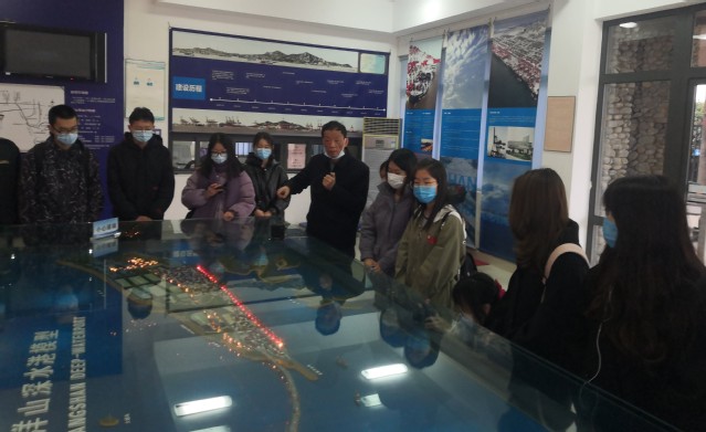 “2005年,洋山港一期工程顺利开港,成为我国最大的集装箱深水港,经过多年发展,已成为世界第一大集装箱港口。2017年底,上海洋山深水港四期码头将开港试运行,目前已经成为全球单体规模最大全自动码头。”12月11日下午,原上海市港口局洋山深水港区管理办公室主任刘国成在洋山深水港区接待大厅自豪地对yl23455永利选修《习近平新时代中国特色社会主义思想概论》课程的同学们进行现场教学。