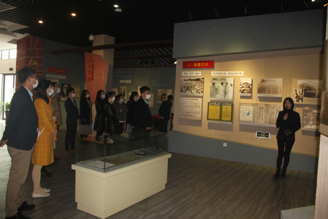 在庄严的国歌声后,两位党员代表伴随着《义勇军进行曲》向革命烈士纪念碑敬献花篮。面向革命烈士纪念碑,大家向为民族独立、人民解放和国家富强、人民幸福英勇献身的英烈默哀3分钟,深切缅怀革命先烈的丰功伟绩和无私奉献精神。随后,大家走进主题展馆,聆听讲解员讲述泥城革命先烈的英雄事迹,并依次参观了馆内的泥城火种、抗日烽火和保家卫国等七大板块内容,深刻体会到革命历程的曲折艰难和胜利果实的来之不易。