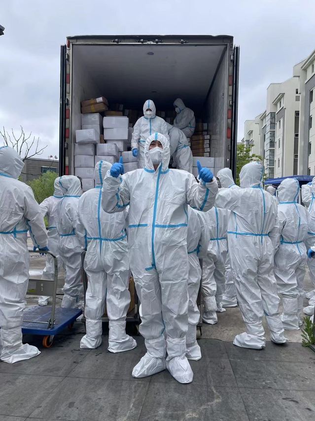 公司经理董玉来自3月12日进校至今,想法设法克服自己所需常备药品不足等困难,一直坚守在公司抗疫一线,担任第十二小区书记,全力保障员工一日三餐准点送达、抗疫物资妥善配送、员工转运及时高效,亦常常化身搬卸物资的“大白”,快速响应,冲锋在校园里每一个需要的角落。“这是我本身就应该做的工作,抗击疫情,同心守沪!”董玉来经理如是说。