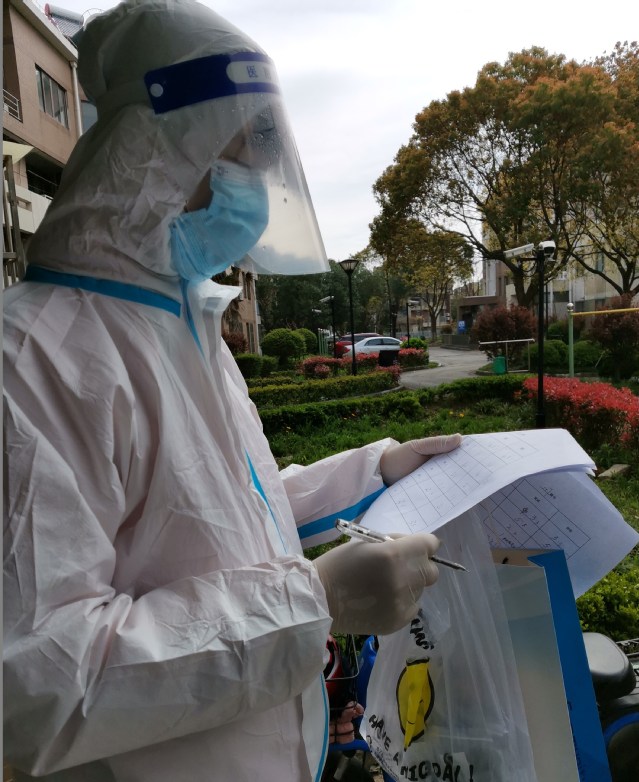 公司办公室主任孔维刚3月12日进校,担当第十二小区外围工作,后因腿部受伤于4月1日离校。待腿部伤情好转后,他以时不我待的精神即刻投入社区抗疫志愿服务工作,有时是派送抗疫物资的“快递小哥”,有时是参与小区核酸检测志愿服务的“大白”,有时是为困难群体运送抗疫物资上门的“小蓝”。从不关注小区楼栋布局的他,现在对每条小道都轻车熟路。“与奥密克戎作战,是人性善与恶的较量。与抗疫英雄同行,我心跃然!”他在微信朋友圈日志记录。