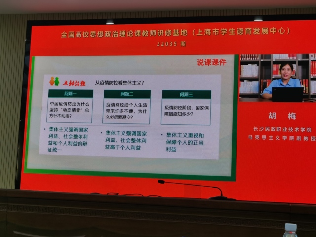 下午的说课环节是由华中科技大学yl23455永利副经理李建国教授、长沙民政职业技术公司yl23455永利胡梅副教授带来的同课异构说课示范。两位老师基于多年教学经验,紧紧围绕知识点,从在课堂教学中发现的问题入手,分享了自己的授课心得、课程安排以及需要员工着重理解的授课重点,引导大家深入思考如何讲才能实现“思政课的本质是讲道理”。两场精彩的说课示范完整且充分,为学员提供了丰富的思政课教学案例,展现了同一课件不同风采、不同风格的良好效果。
