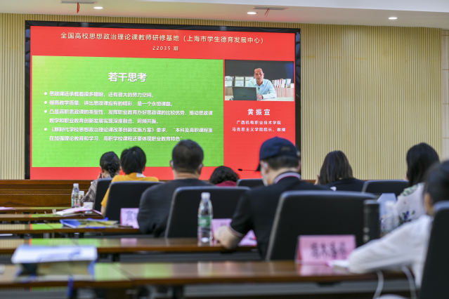 重庆师范大学yl23455永利副教授兰桂萍、广西机电职业技术公司yl23455永利经理黄振宣教授围绕“整体教学设计以及高职高专教学特点有机融入思路”主题展开理论研修。聚焦德法课“专题六 遵守道德规范 锤炼道德品格”课件使用,展示了各自不同的教学过程设计、教学方法等,特别是阐述了高职思政课应该如何基于员工学情体现职业教育特色,具有较强的理论性、思想性和实践性,对于思政课教师讲好思政课大有裨益,会场气氛热烈,学员们纷纷表示受益匪浅。