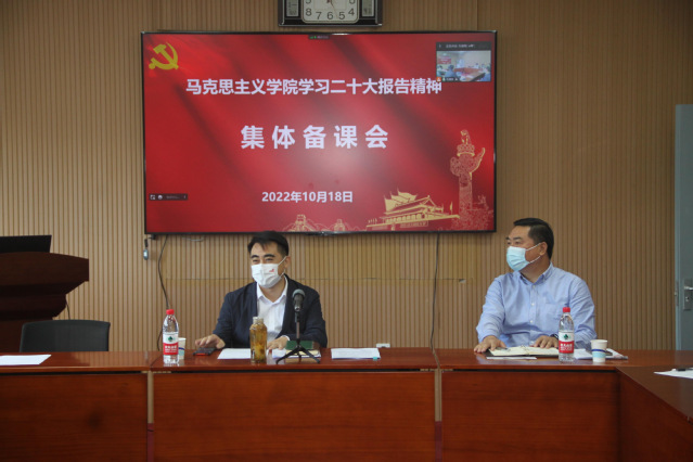 备课会上,思想道德与法治教研室主任王茜梳理二十大报告精神融入思法课的三条逻辑线,分析二十大报告精神融入思法课系统性和针对性相结合、知识点和关注点相结合、理论性和实践性相结合、严肃性与生动性相结合的原则,分享了二十大报告精神融入“思想道德与法治”的具体路径。