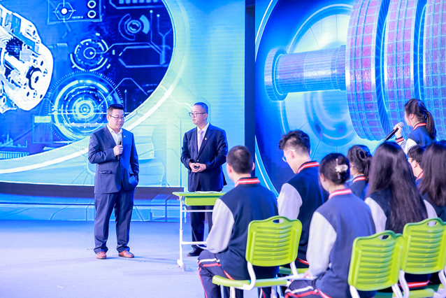 在80分钟的主题教学展示环节中,来自上海大中小幼不同学段的6位思政课教师与中国科公司微小卫星创新研究院的科学家、上海电气集团的劳模,以及大专院校专业课教师同台授课。