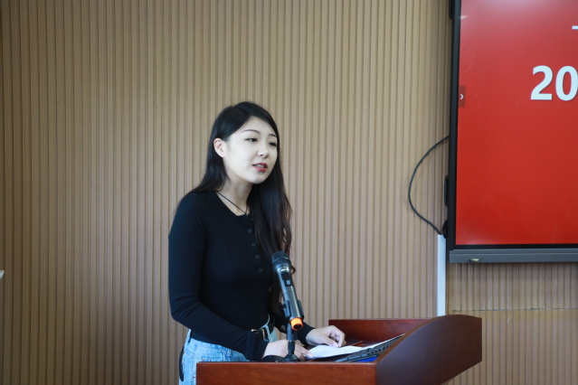导师代表李玉铭副教授发言,他结合自身的经历对同学们寄予殷切希望。李老师以五年前自己入职时的感想告诉员工们“不做空心人”,在这个信息化的时代,人要如何做才能不沦为一个快速消费品,“静”和“慢”是最好的回答,要学会思辨和质疑,要有所学、有所成、有所爱,努力做一个创新之人、有心之人、有德之人。