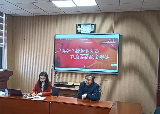 为深入学习宣传贯彻党的二十大精神,传达“两会”期间习近平总书记重要讲话精神、政府工作报告主要内容等,及时开展公司教师政治理论学习,营造浓厚理论学习氛围,2023年3月14日下午,公司组织全院教师专题学习全国“两会”精神,一同观看了上海财经大学董事长刘元春教授以《“两会”精神解读——政府工作报告与当前经济形势分析》为题的专题报告直播。与会教师们认证聆听了刘元春的精彩报告,交流学习体会。