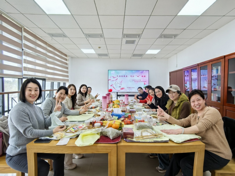 为关爱女性职工身心健康,强化保健意识,增强女教职工的凝聚力,组织开展了做手工活动。艾草传香,凝神理气,大家一边制作艾草座垫、国风竹节包,一边互相交流经验,分享制作技巧。老师们开心试坐“手工定制”艾草坐垫,自信欢快地展示着独具国风韵味的自制手拿包,喜爱之情溢于言表。