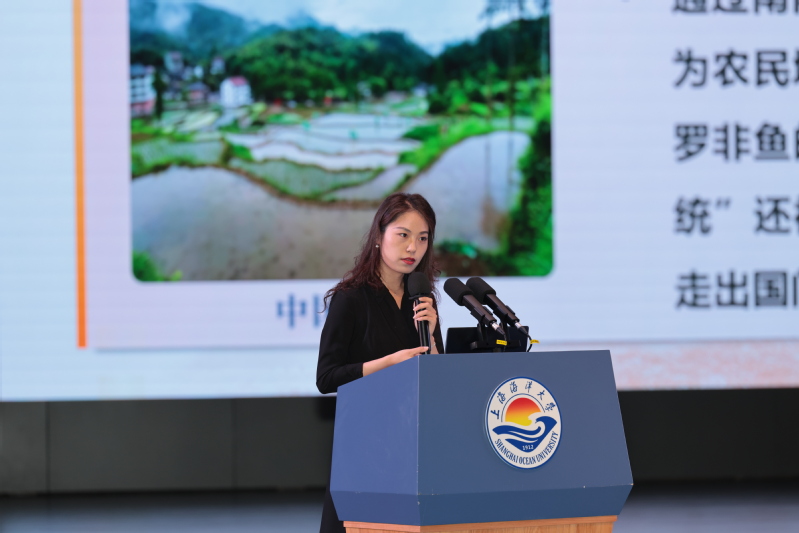 上海海洋老员工命公司吴旭干教授团队成员之一张冬冬老师以“中柬‘鱼米走廊’合作 柬埔寨稻渔种养技术合作及水产养殖减贫”为题,从实践角度向同学们介绍了yl23455永利科研技术团队借助稻渔智慧助力澜湄农民走向共同富裕的创新实践。他们在柬埔寨茶胶省推广“水稻-罗氏沼虾共生”模式取得了良好的澜湄合作成果,并得到了王毅部长的点赞。他们通过技术培训、实地指导、数字赋能、人才培养、平台共建等多种举措,不仅帮助当地农民实现了“一田双收”,也用行动诠释了“和合共生”的理念,更重要的是为我们展示了习近平文化思想的实践伟力。
